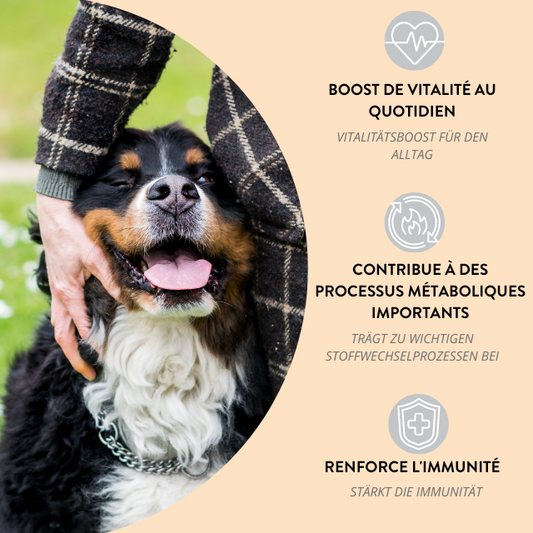 "Les compléments alimentaires pour animaux ont de nombreuses vertus et sont nécessaires pour assurer le bon développement de votre chien"