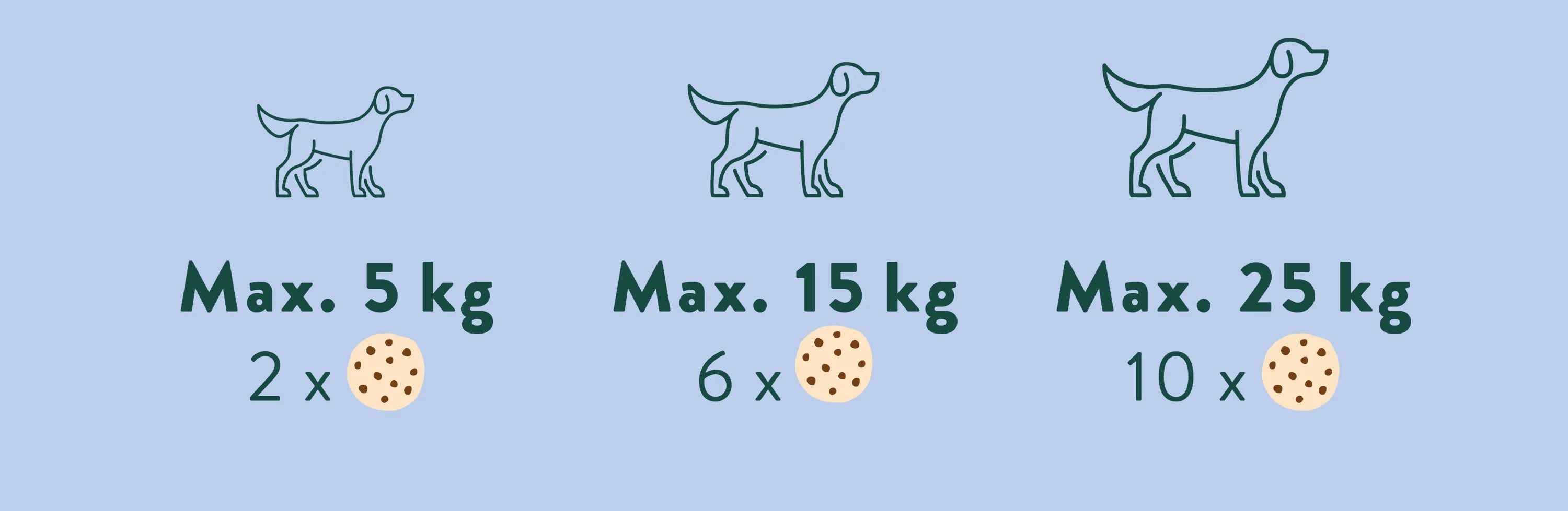 Apport journalier recommandé en fonction du poids 2 friandises par tranche de 5kg